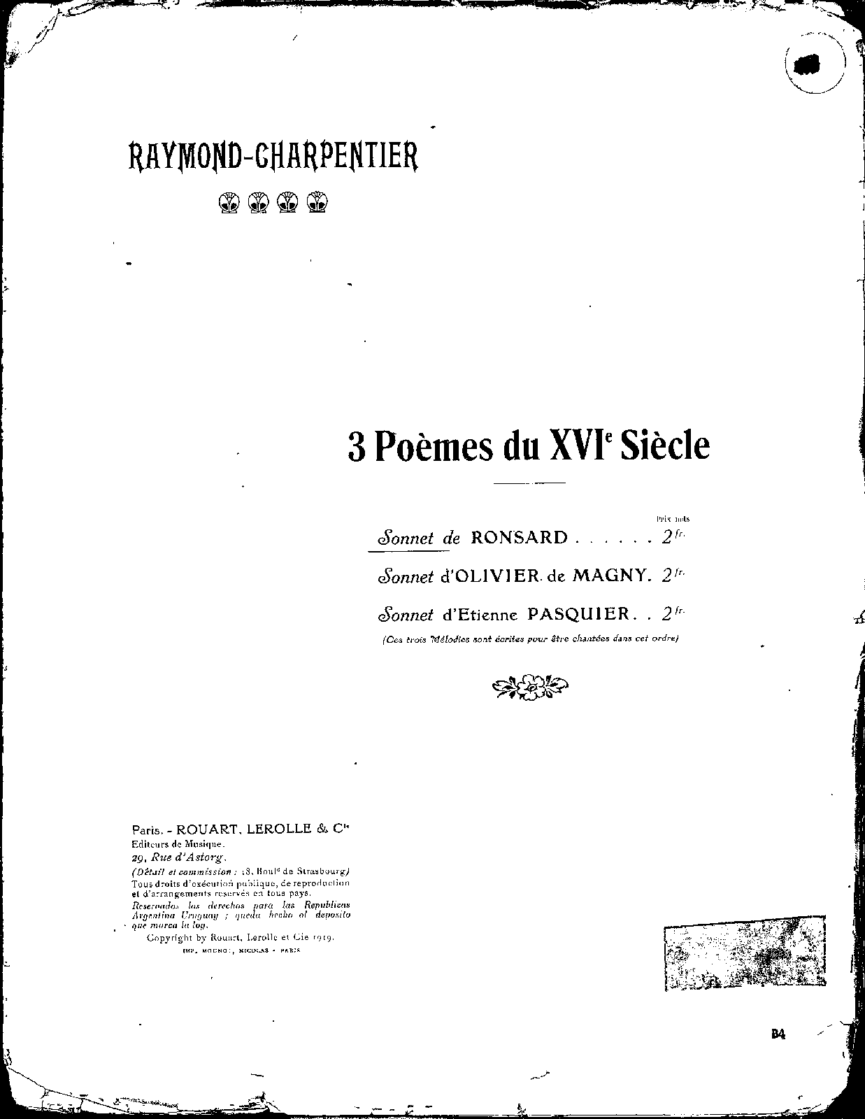 3 Poemes du XVIe siècle (Charpentier, Raymond)