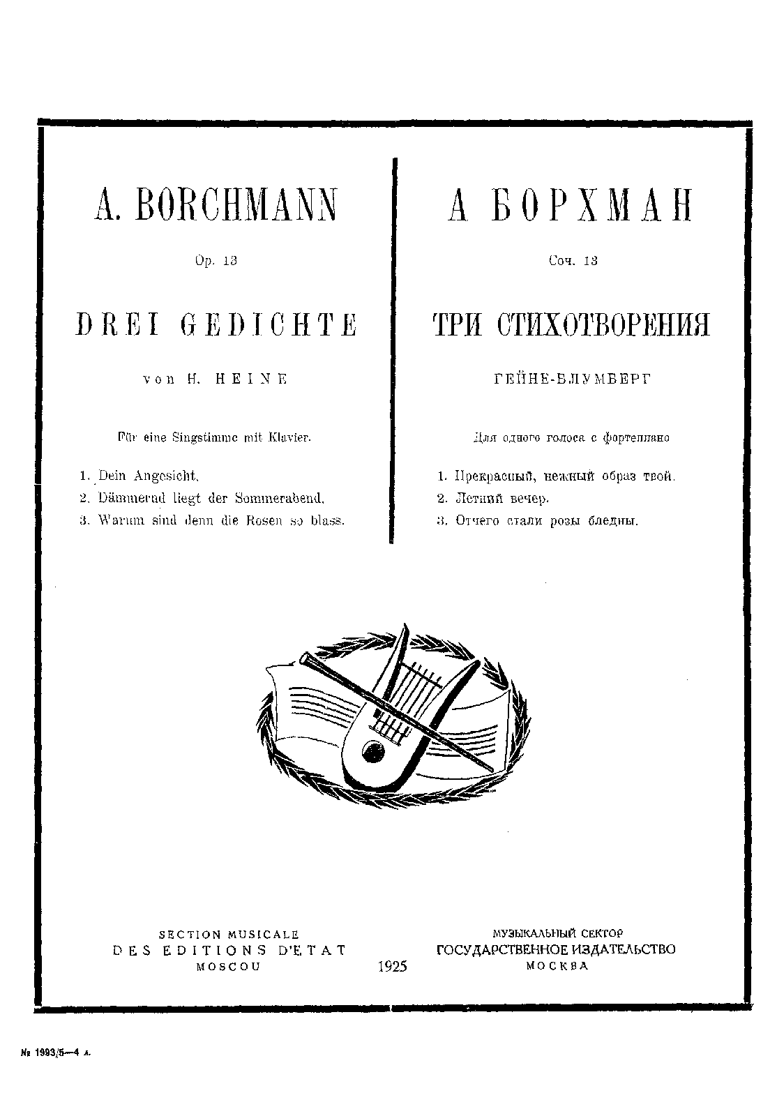 | Alternative. Title | Три стихотворения Гейне-Блумберг ; 3 Gedichte von H. Heine |