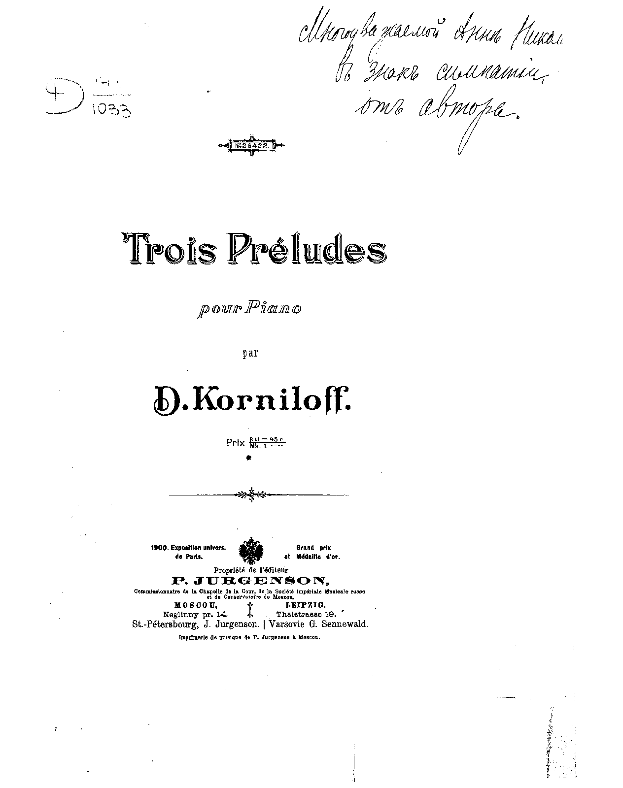 | Movements/SectionsMov'ts/Sec's | 3 preludes |