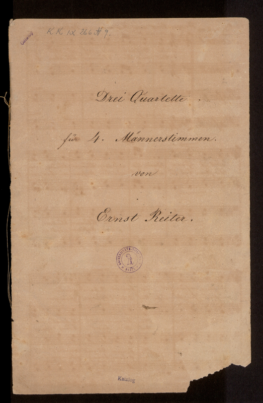 | Alternative. Title | Drei Quartette für 4 Männerstimmen von Ernst Reiter |