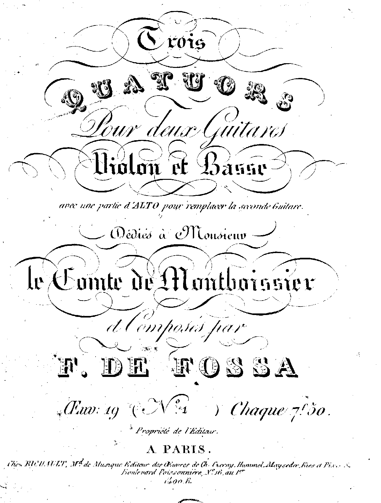 3 Quatuors pour deux Guitares,Violon et Basse, avec une partie d'Alto pour remplacer la seconde Guitare