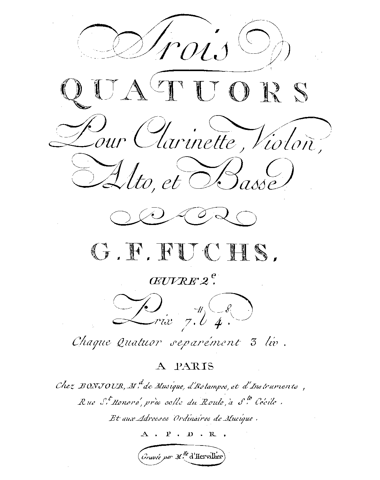Original images: 400dpi grayscale jpg files approx. 4680 by 6060 pixels. Editing: re-sampled to 600dpi, converted to black and white tif files, de-skewed, and set uniform margins. Apparently, page 5 of the violin part was intentionally left blank. This edition was mentioned in Journal de Paris, 18 Février 1789 issue (could reflect a publication from 1788 or 1789...)