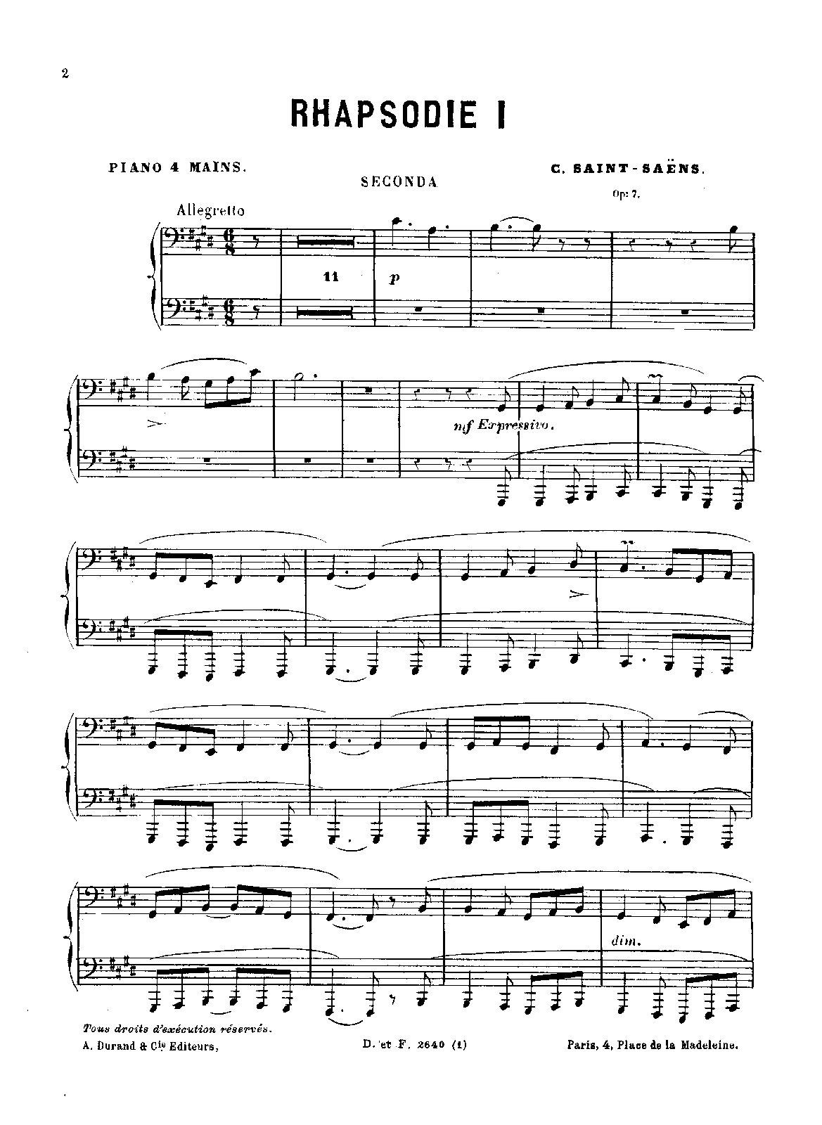 1880 date from Teller-Ratner, Camille Saint-Saëns, 1835-1921: The instrumental works, page 111. "Piano duet: Paris, Durand, pl. nos. 2640(1-3), January 1880".