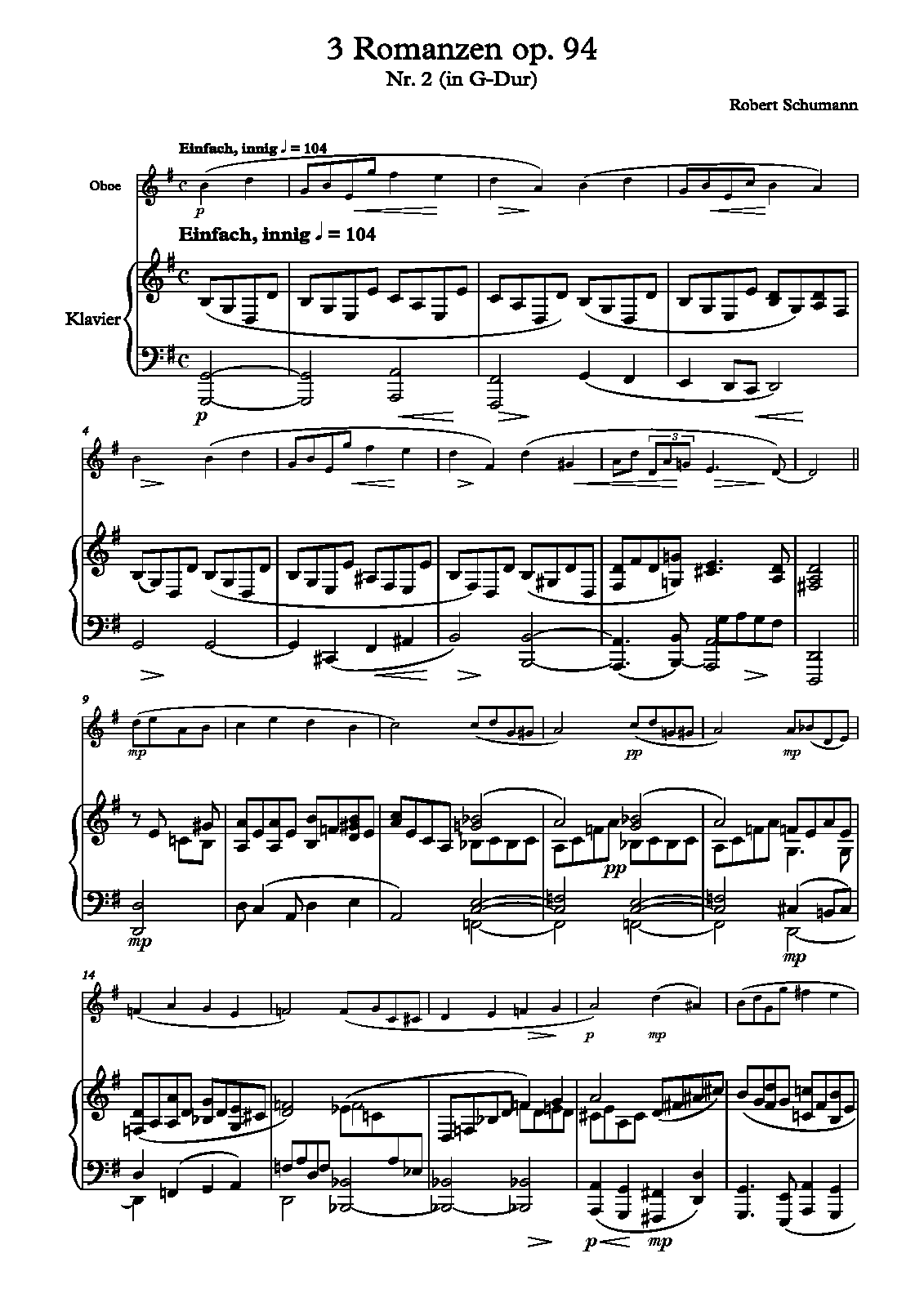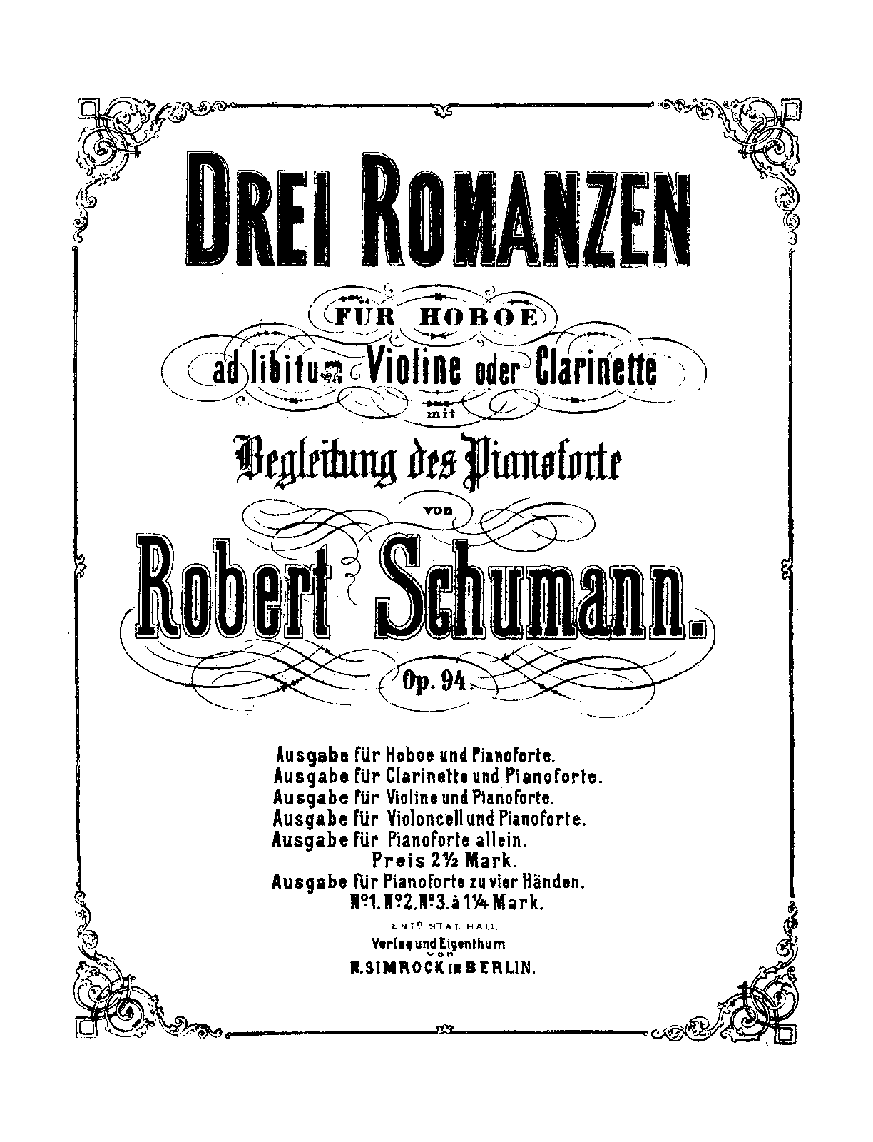 Name Aliases Schumann Opus 94; Drei Romanzen, Op. 94