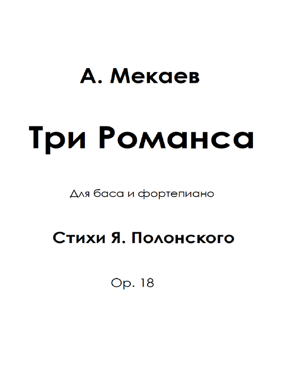 | Genre Categories | Romances; For voice, piano; For voices with keyboard; |