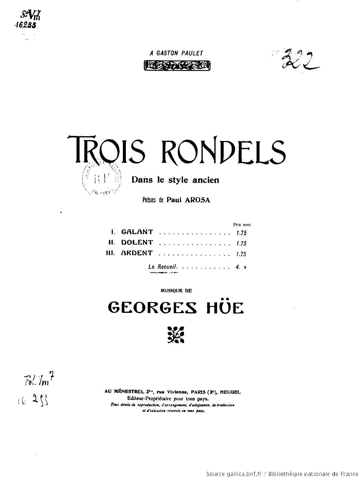 | Genre Categories | Songs; For voice, piano; For voices with keyboard; |