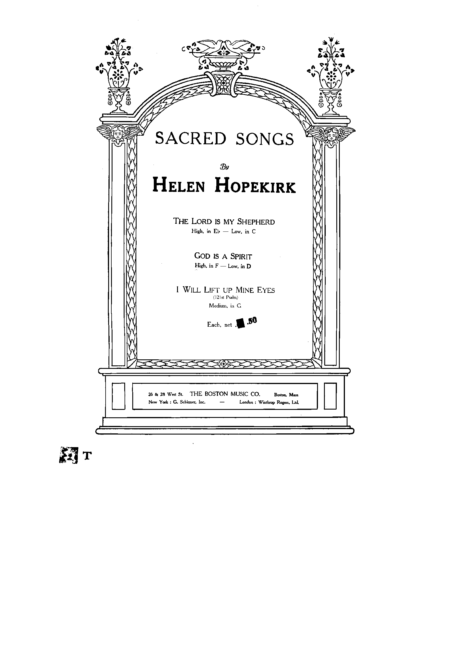 An advertisement in Boston Symphony Orchestra, Volume 37 (program notes for the October 26 1917 concert, p.148) by Boston Music Company lists a Suite for Piano, and "Two Sacred Songs" by Hopekirk including The Lord is my Shepherd, and God is a Spirit. No mention is made of a third.