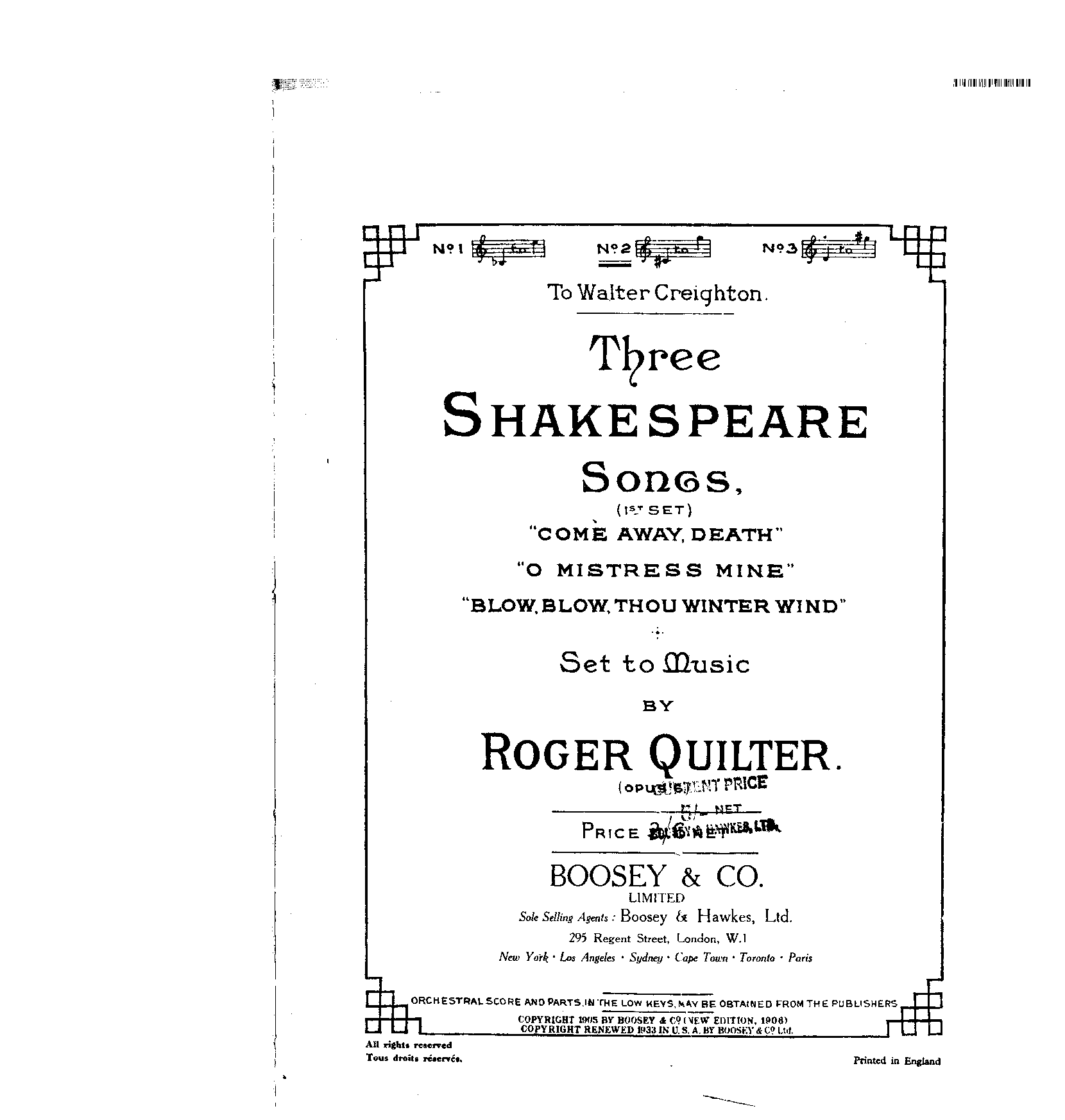 | Genre Categories | Songs; For voice, piano; For voices with keyboard; |