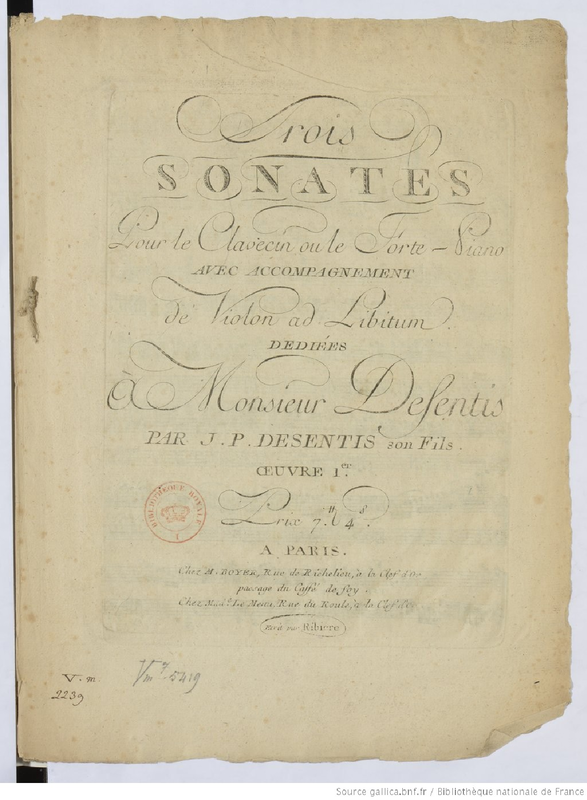| Alternative. Title | Trois Sonates pour le Clavecin ou le Forte-Piano avec accompagnement de Violon ad libitum |