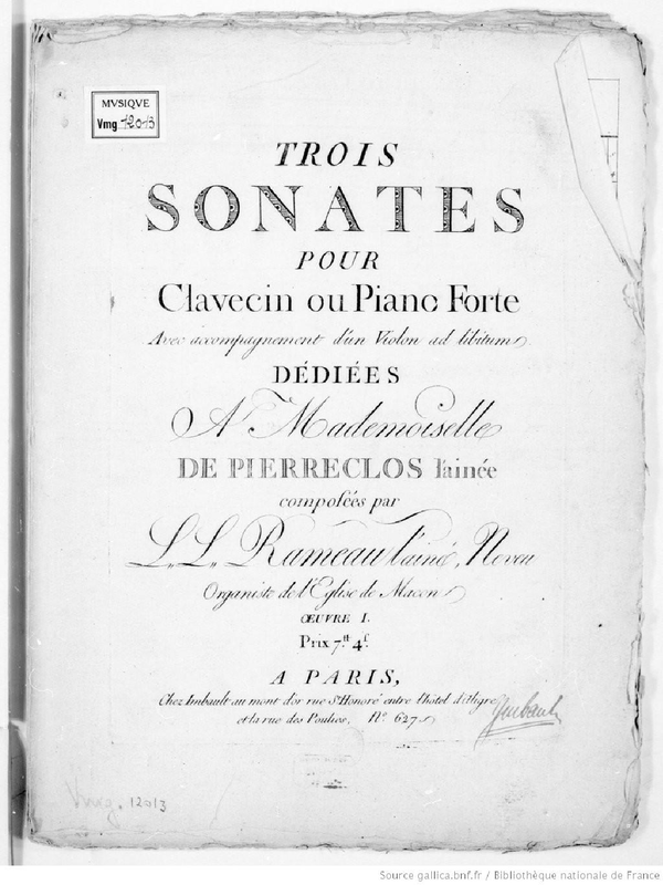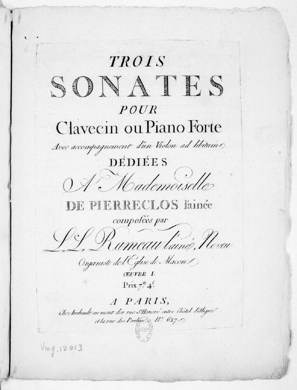 Trois Sonates pour Clavecin ou Piano Forte avec accompagnement d'un Violon ad libitum, Œuvre I