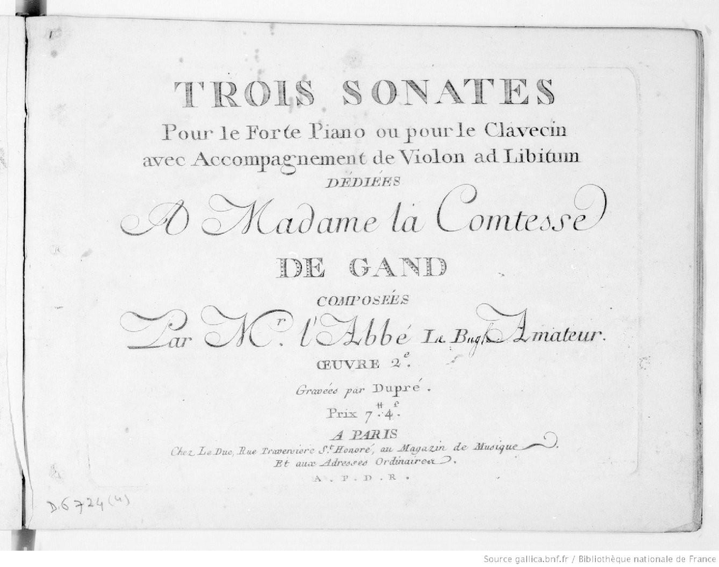 Alternative. Title Trois Sonates pour le Forte Piano ou pour le Clavecin avec accompagnement de violon ad libitum
