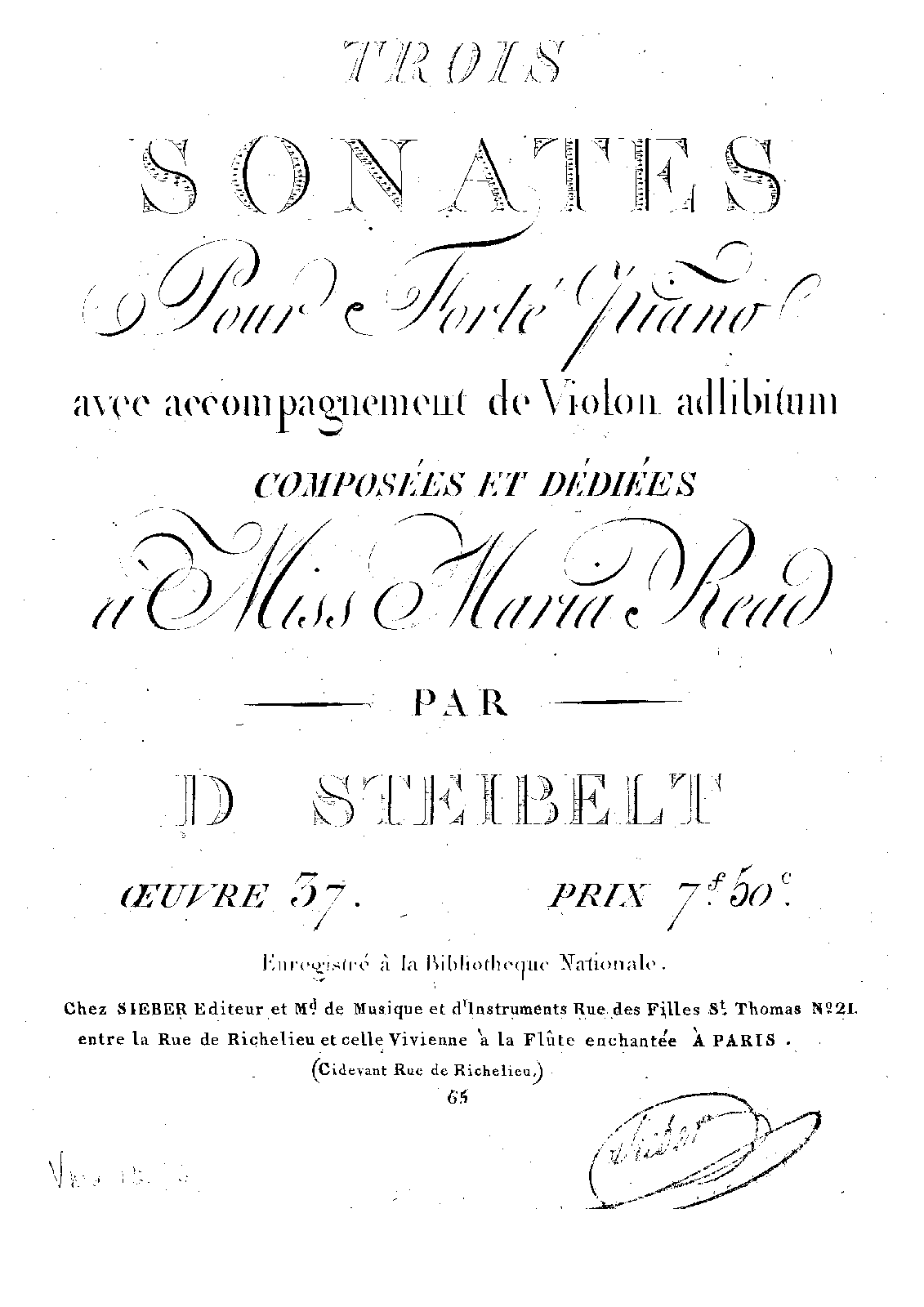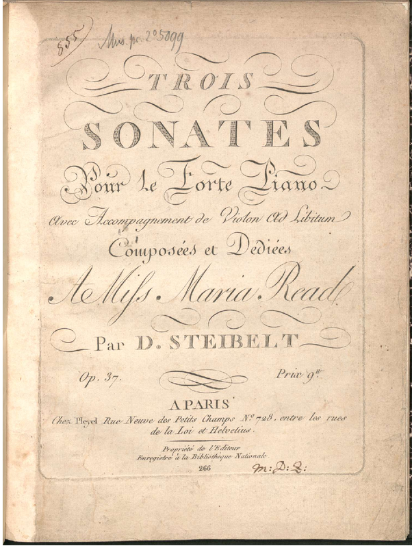 | Alternative. Title | Trois Sonates pour le forte piano avec accompagnement de violon ad libitum |