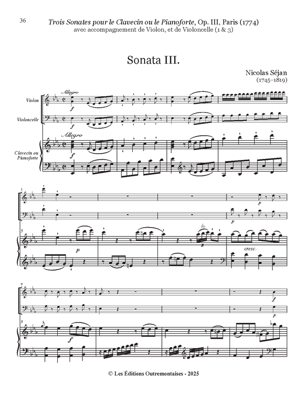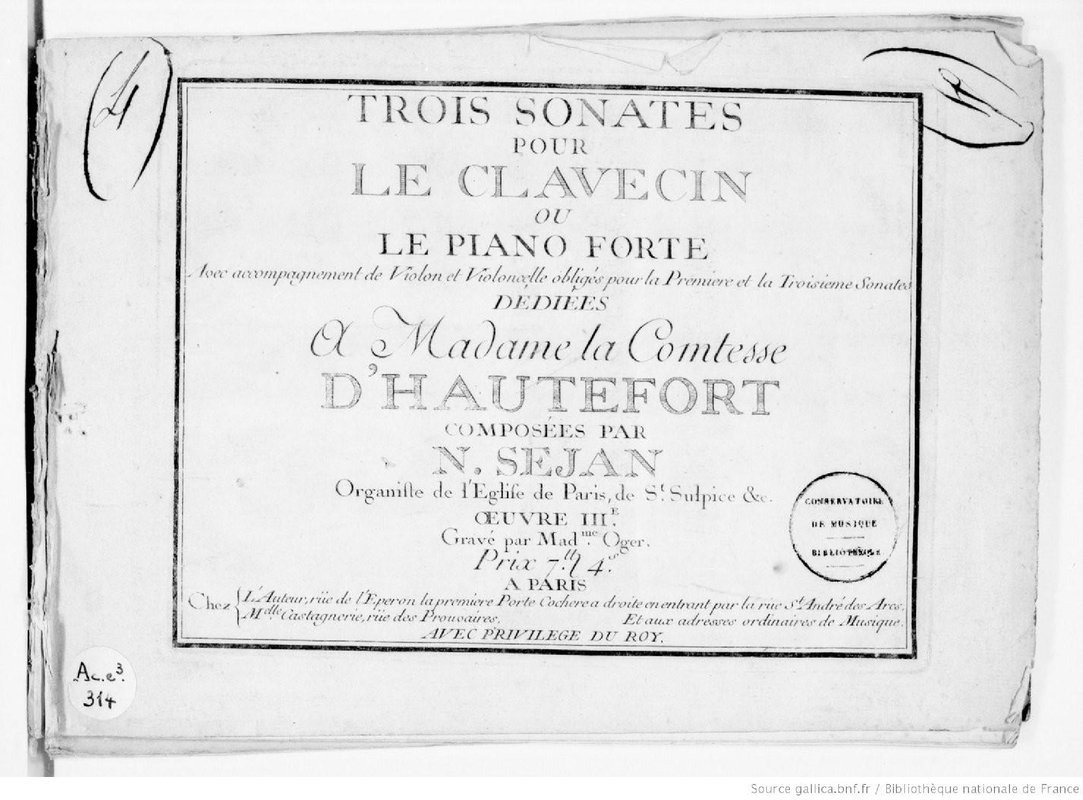 | Alternative. Title | Trois Sonates pour le clavecin ou le piano forte avec accompagnement de Violon et Violoncelle obligés pour la Première et la Troisième sonates |