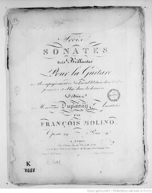Trois sonates très brillantes pour la guitare avec accompagnement de violon ad libitum dans les deux premières et obligé dans la dernière