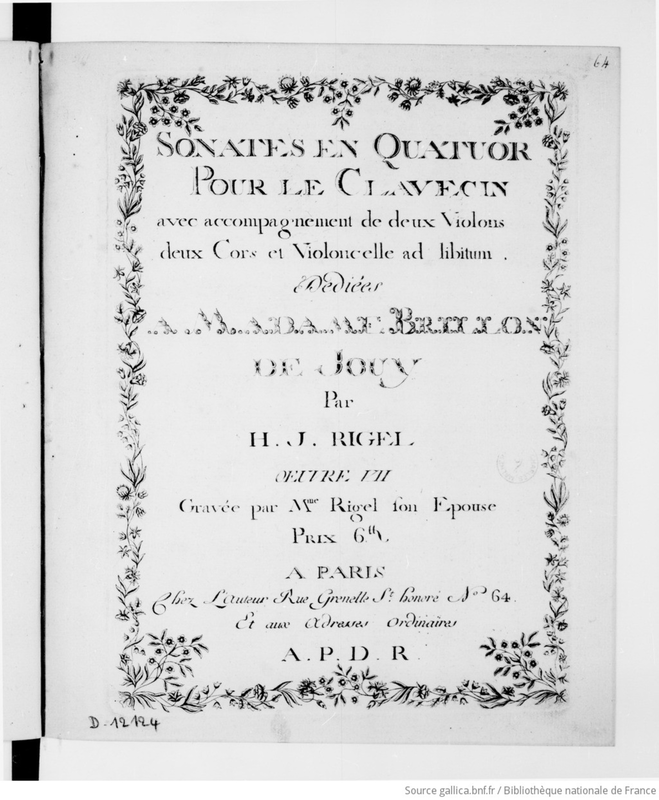 | Alternative. Title | Sonates en Quatuor Pour le Clavecin avec accompagnement de deux Violons deux Cors et Violoncelle ad libitum |