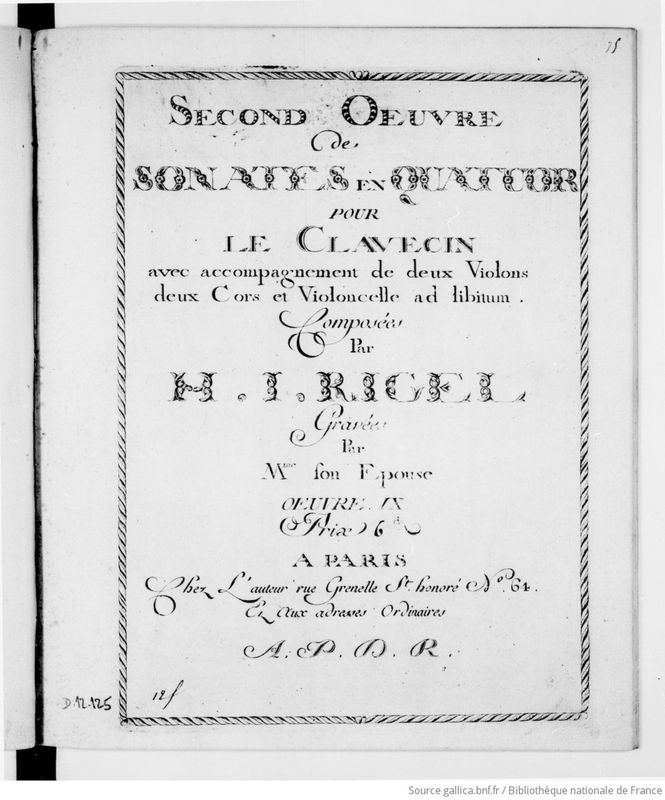 | Alternative. Title | Second Oeuvre Sonates en Quatuor Pour le Clavecin avec accompagnement de deux Violons deux Cors et Violoncelle ad libitum |