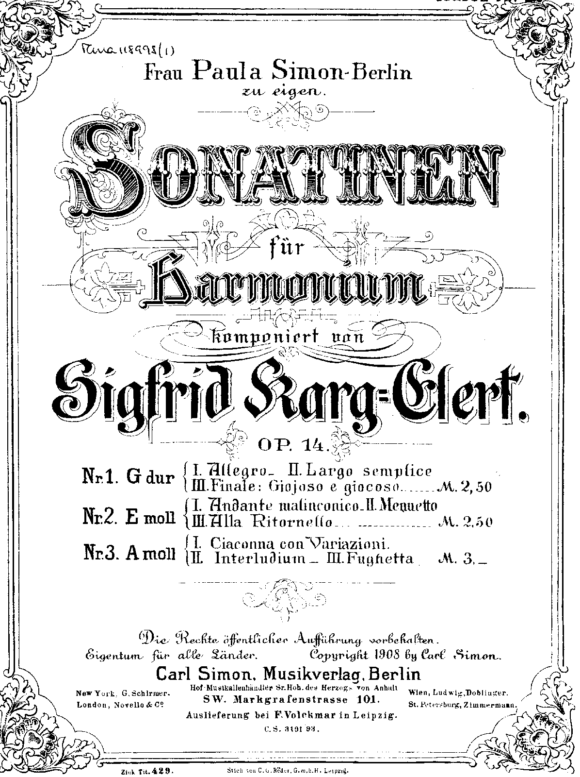 | Genre Categories | Sonatinas; Sonatas; For harmonium; Scores featuring the harmonium |