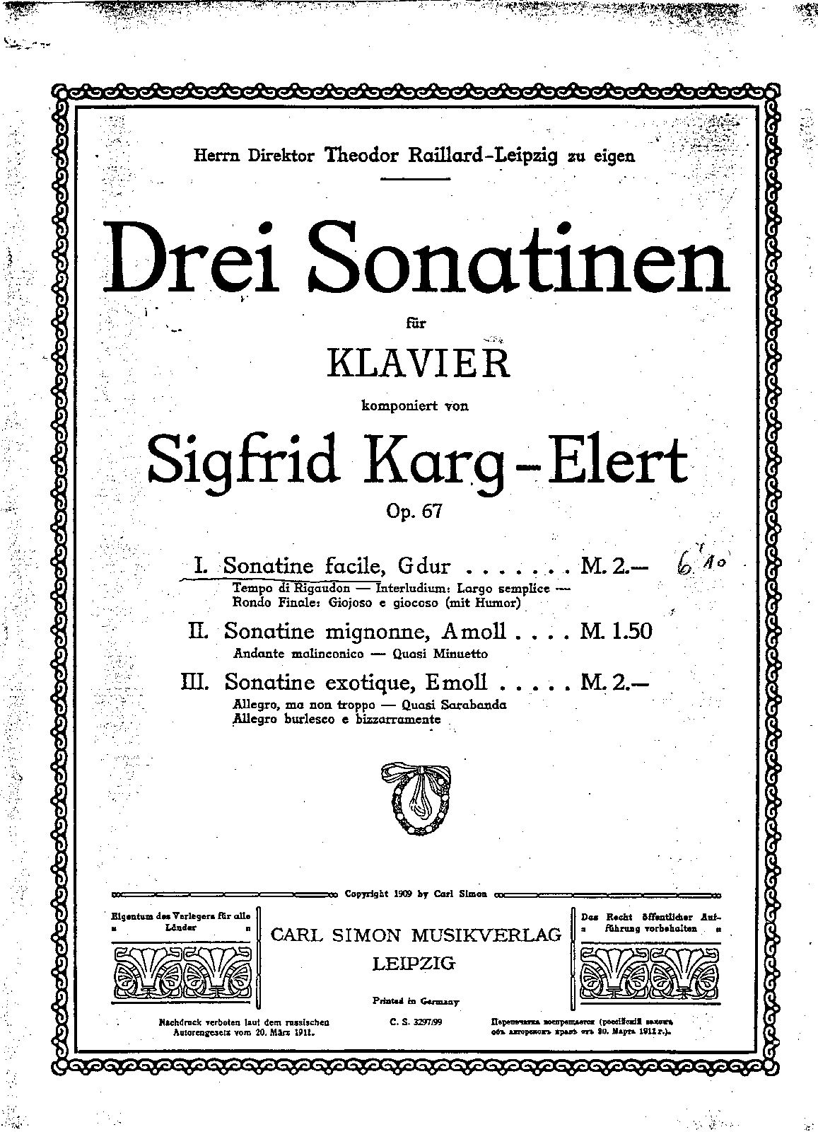 | Work Title | Three Sonatines for piano, Op.67 |