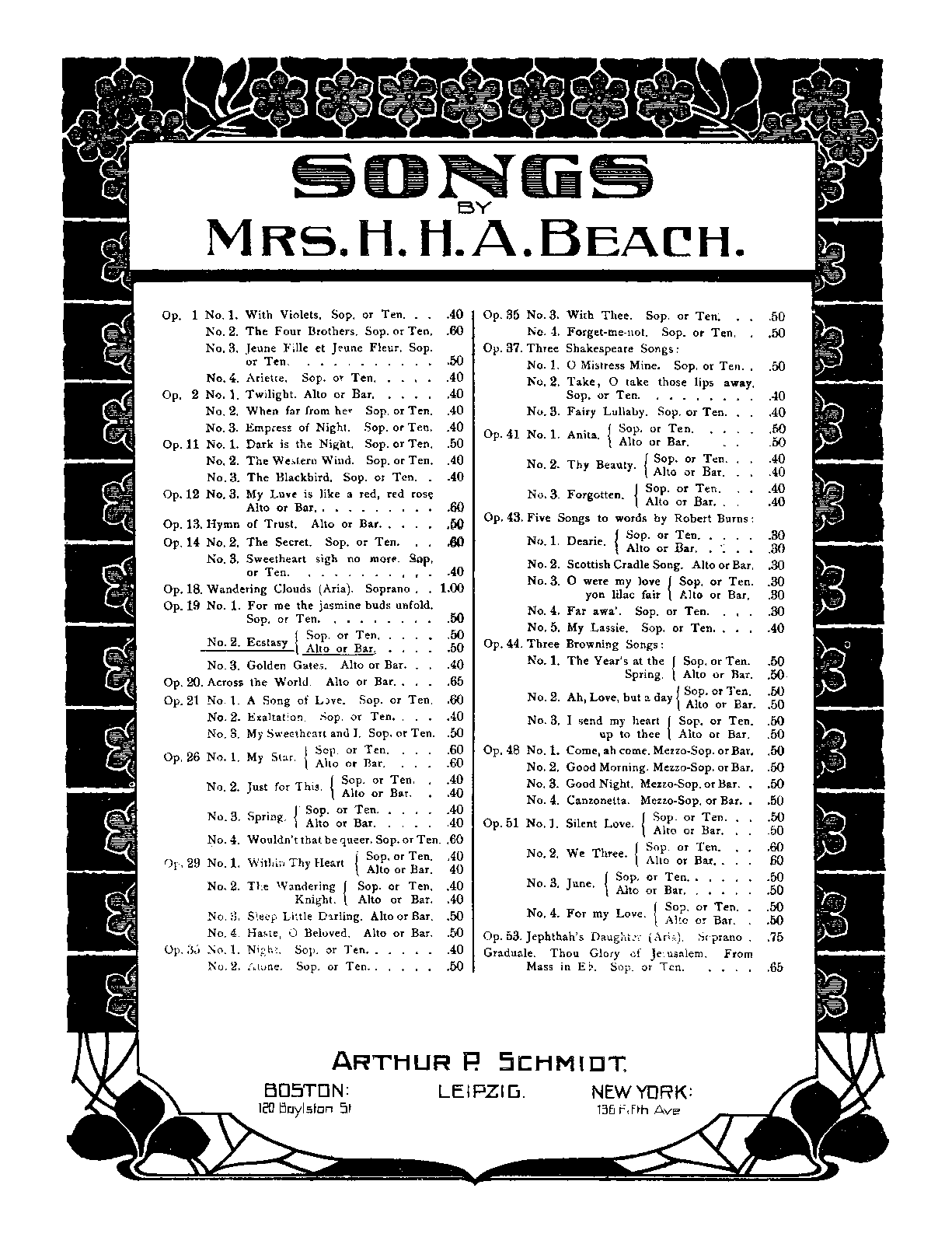 | First Publication | 1892 – Boston: Arthur P. Schmidt |