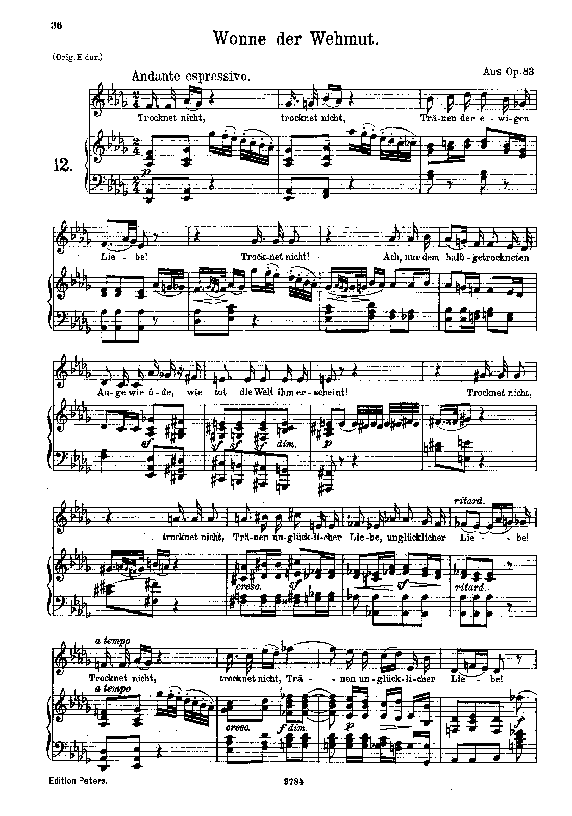 1. Wonne der Wehmut (medium/low voice, transposed to D♭ major)