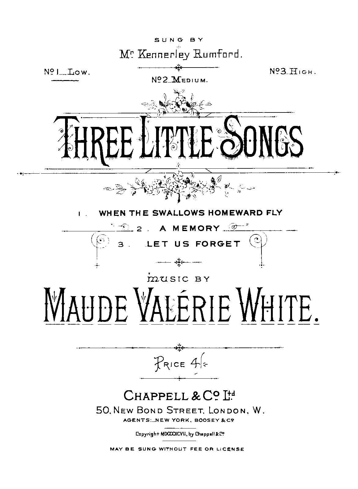 First Publication. 1897 – London: Chappell & Co., Ltd.