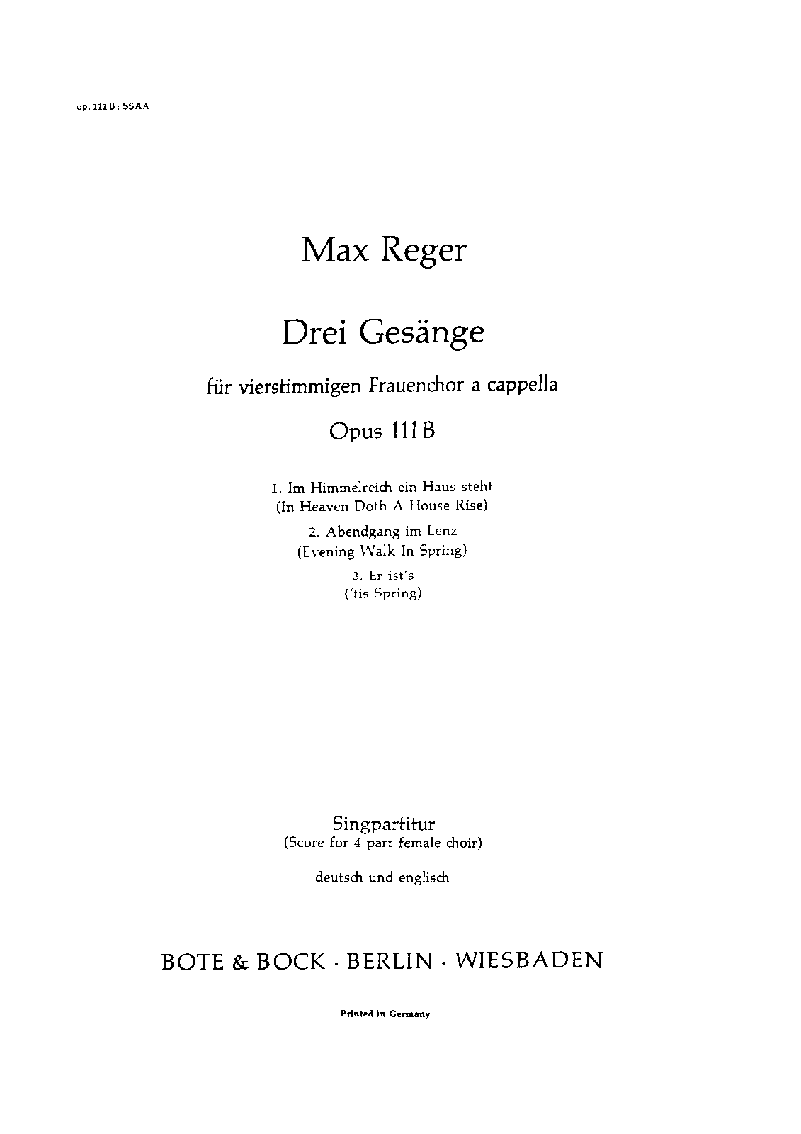 Alternative. Title Drei Gesänge für vierstimmigen Frauenchor a cappella