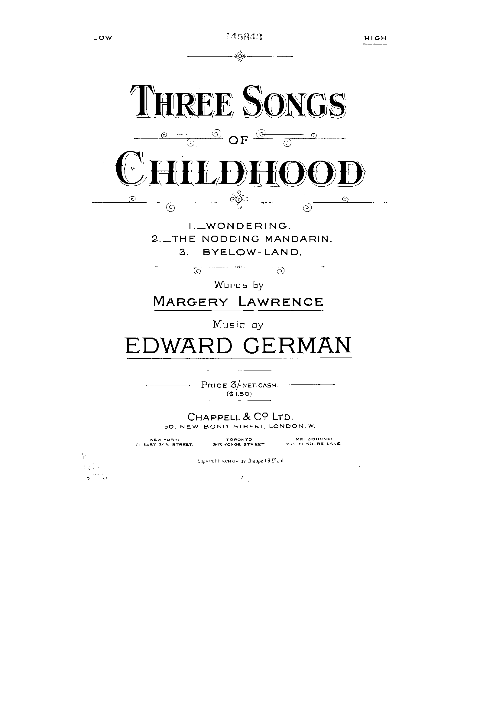 | Genre Categories | Songs; For voice, piano; For voices with keyboard; |