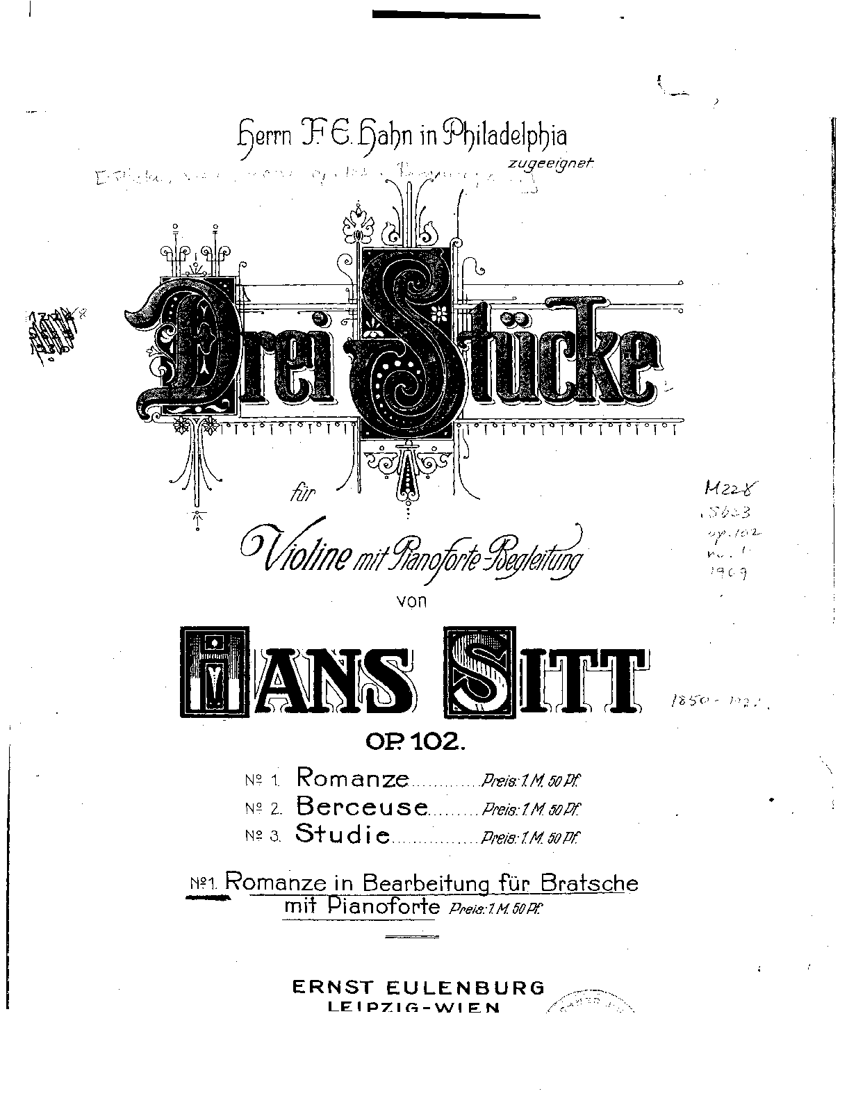 Dedication Herrn F. E. Hahn in Philadelphia zugeeignet