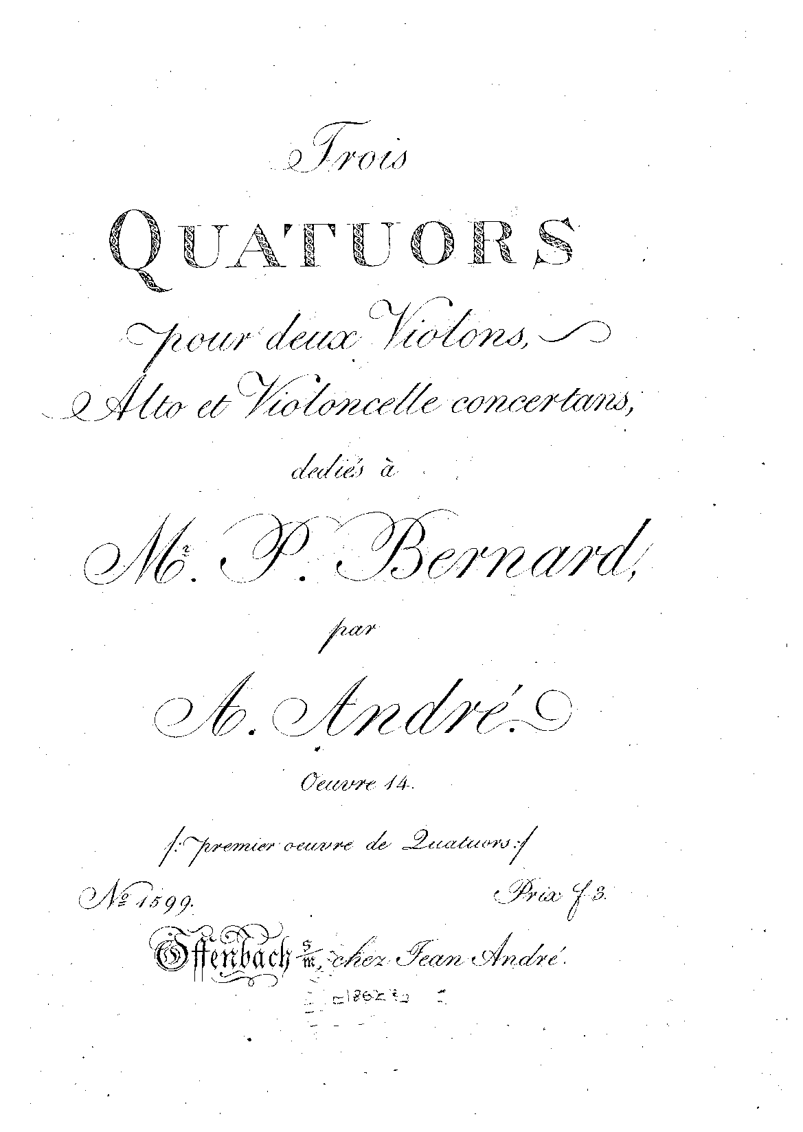 | Genre Categories | Quartets; For 2 violins, viola, cello; Scores featuring the violin; |