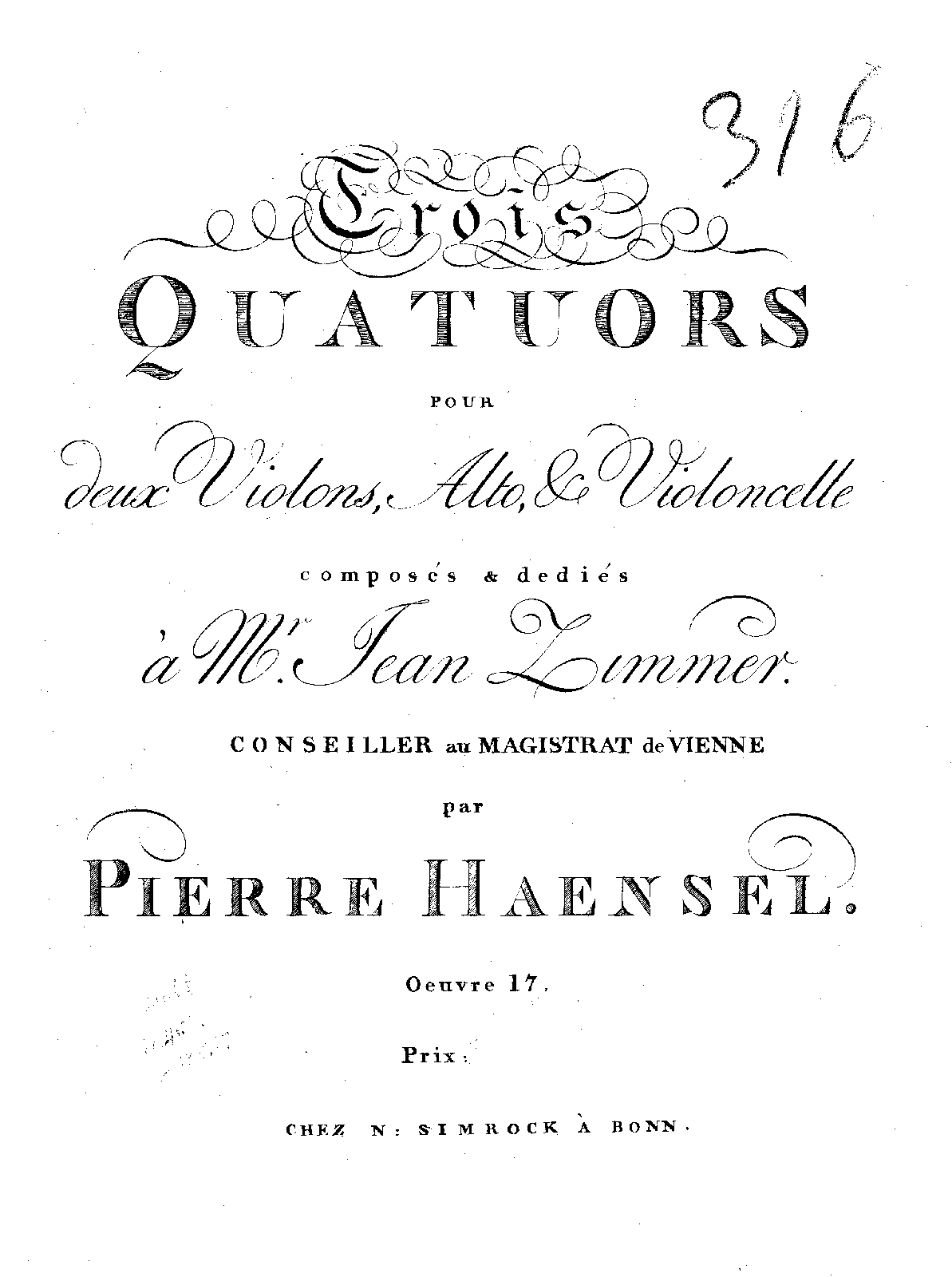 | Alternative. Title | Trois quatuors pour deux violons, alto & violoncelle |