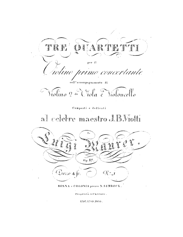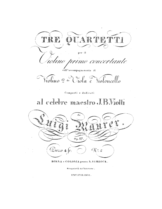 | Alternative. Title | Tre quartetti per il violino primo concertante coll'accompagnamento di violino 2do, viola e violoncello |