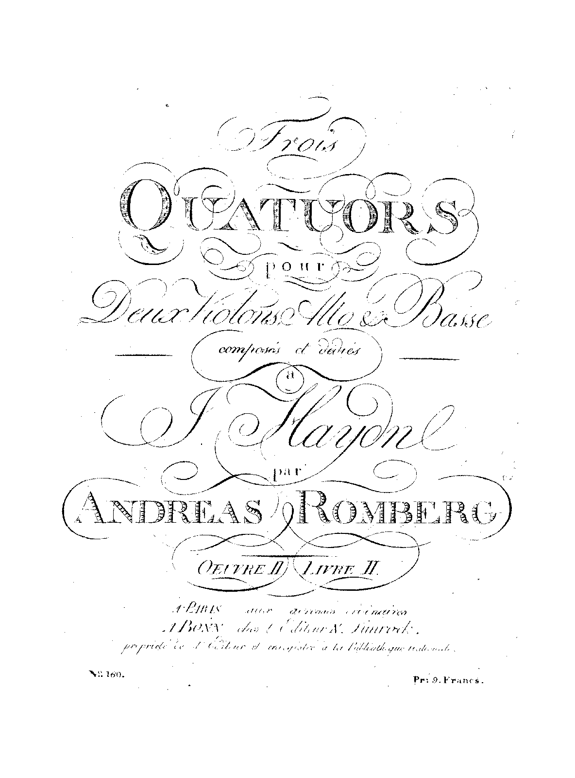 | Alternative. Title | Trois Quatuors pour deux Violons, Alto & Basse |