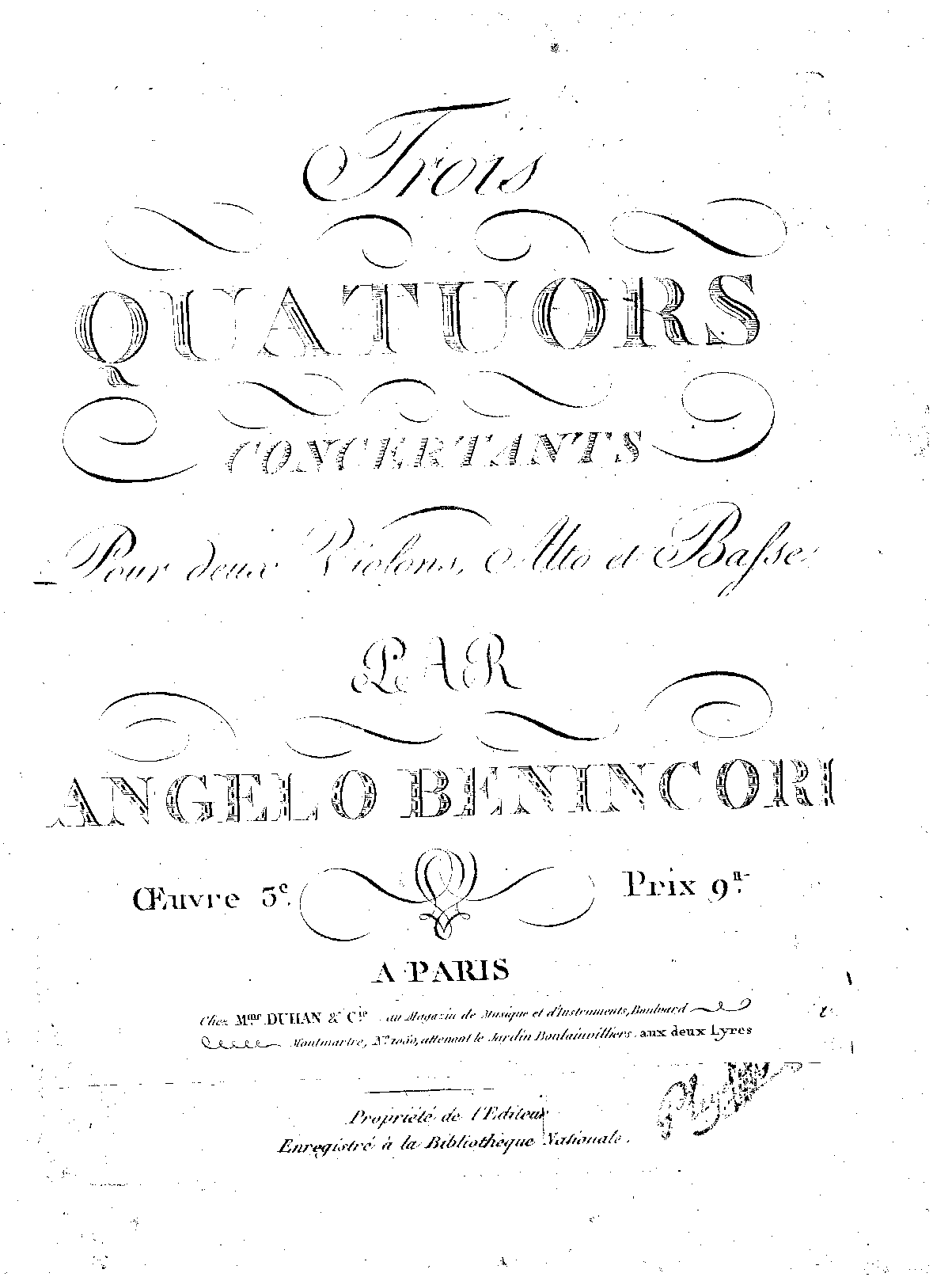 | Genre Categories | Quartets; For 2 violins, viola, cello; Scores featuring the violin; |
