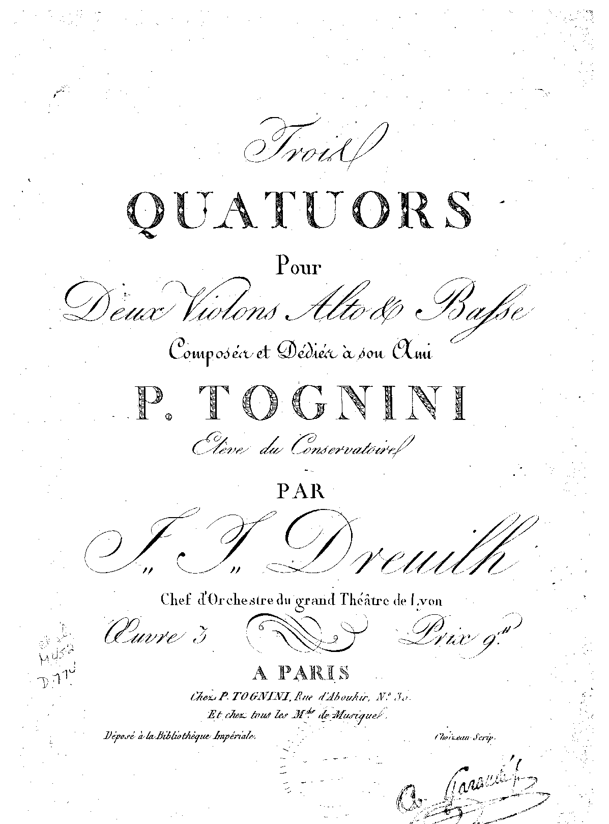 | Alternative. Title | Trois quatuors pour deux violons, alto & basse |
