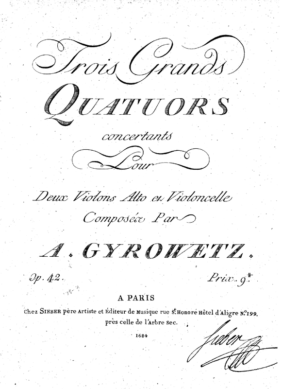 The quartets published by Gombert are not the same quartets published by Sieber. While the title page of both sets list the quartets as Op.42, they are not the same works. The Sieber Op.42 were also published by Artaria of Vienna as Op.29. Op.42 Nos. 1 and 2 (aka 29 Nos. 1 and 2) have been recorded by the Pleyel Quartet of Cologne on a CPO CD 777 770. Op.29 quartets are in the keys of E flat Major, G Major and The Gombert Op.42 were originally published by Bureau d'Arts et d'Industrie in Vienna in about 1802. The keys are D Major, F Major and c minor. These quartets were recorded by the Quartetto Oceano.