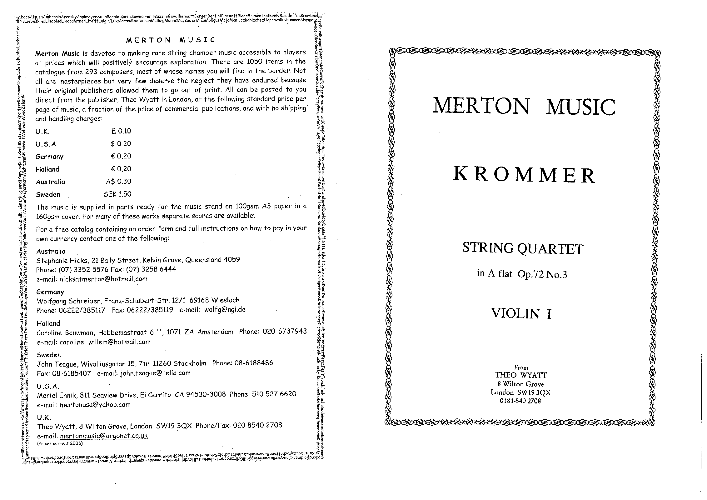 | Genre Categories | Quartets; For 2 violins, viola, cello; Scores featuring the violin; |