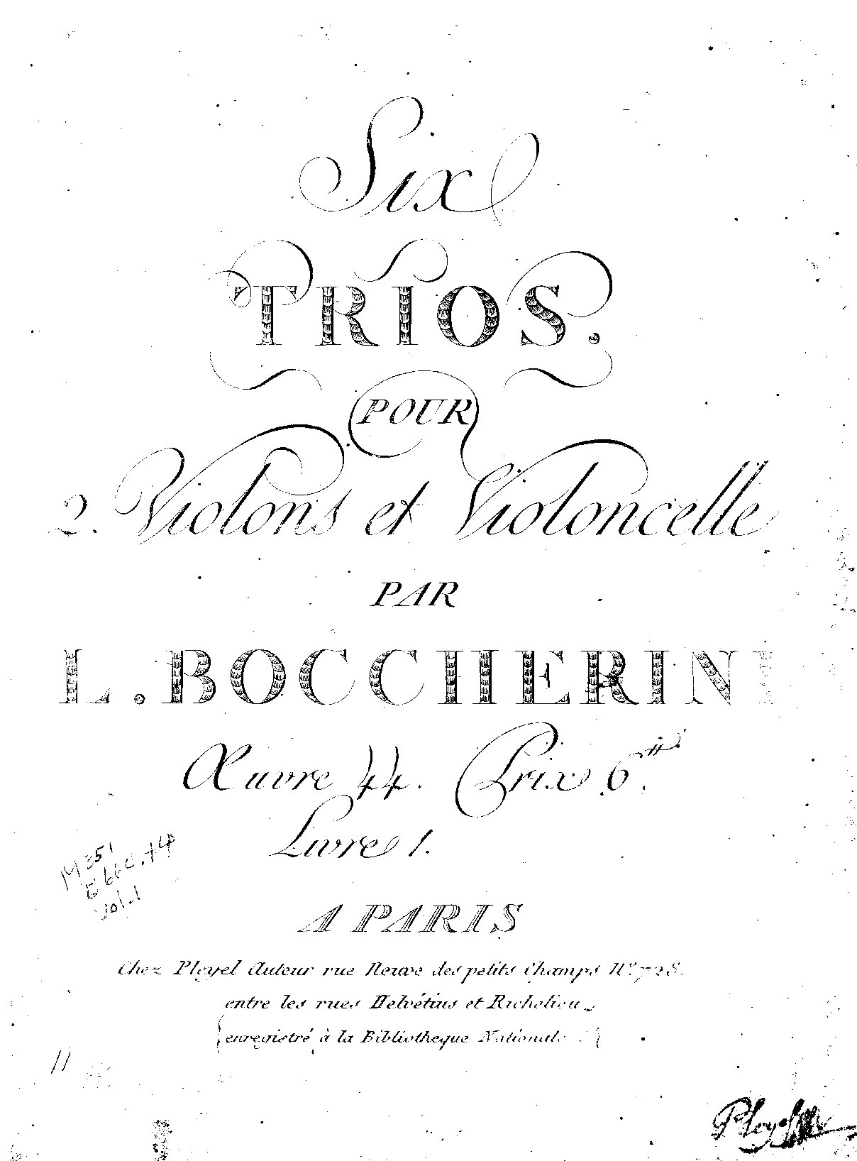 G.113, 116, 117, 118 published by Pleyel as part of Op.44 (which also includes G.102, 103 from Boccherini's Op.34); G.114, 115 unpublished in Boccherini's life-time, (Pleyel published them as Duets for 2 Violins, G.63, 67 (see 6 Duos for 2 Violins, G.63-68).
