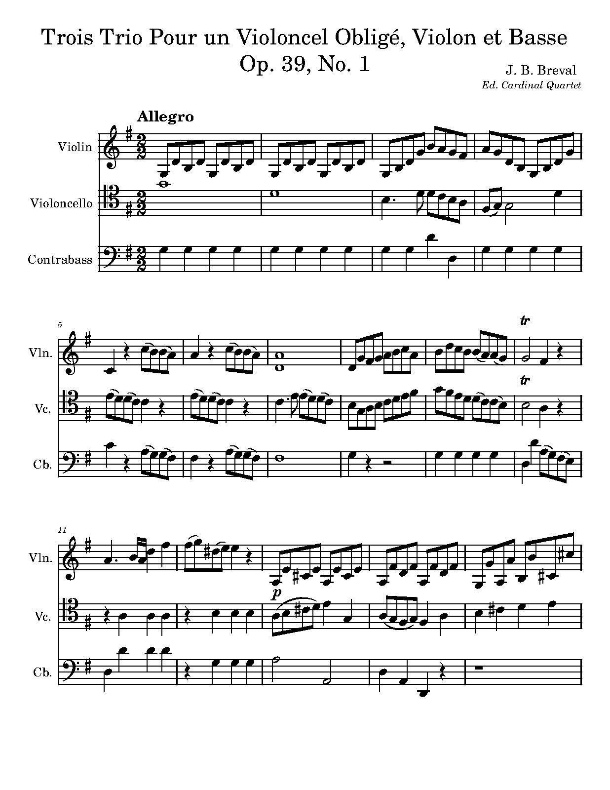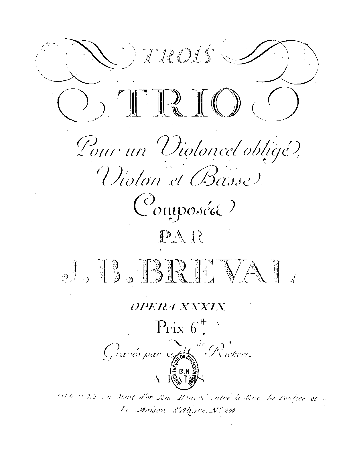 | Alternative. Title | Trois Trio per un Violoncel obligé, Violon et Basse. |