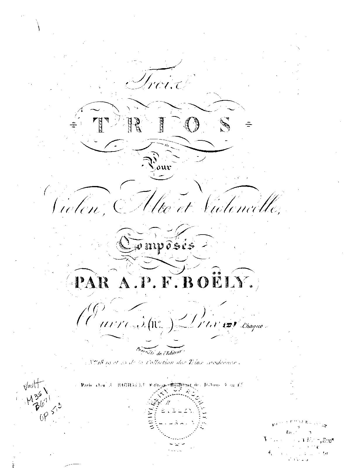 This file is part of the Sibley Mirroring Project. 525 is also the plate of 2 other trio op.nos.- perhaps it belongs to a Richault collection of string trios by various composers (not just Boëly, Praeger and Krommer but others besides?)