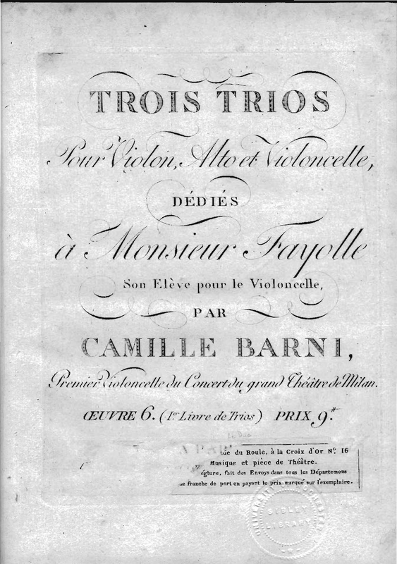 | Dedication | Monsieur Fayolle (Barni's cello pupil) |