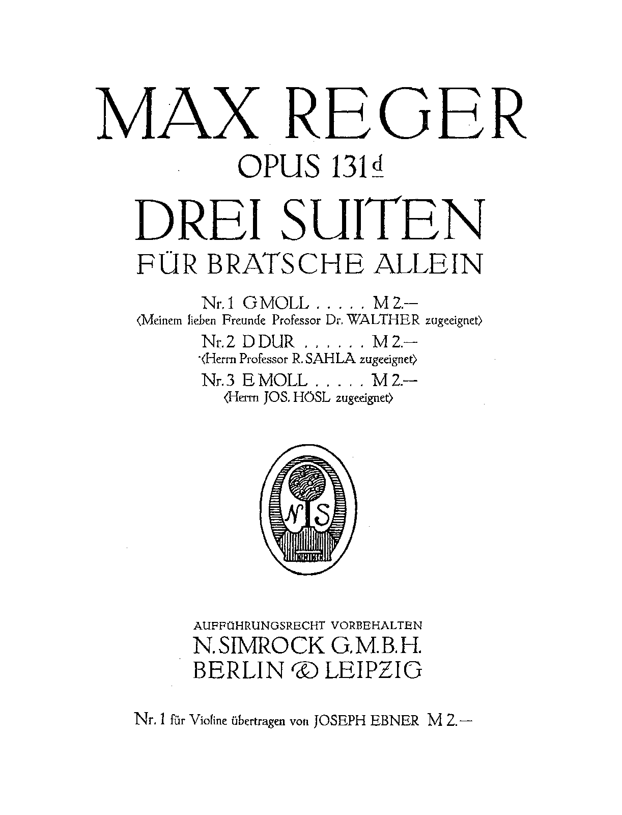 | Work Title | 3 Suites for Solo Viola, Op.131d |