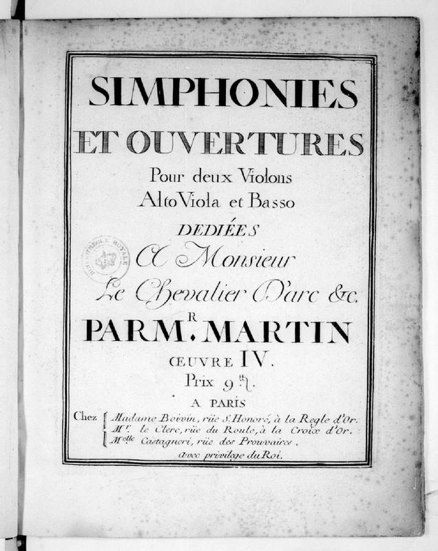 | Alternative. Title | Simphonies et Ouvertures pour deux violons alto viola et basso |