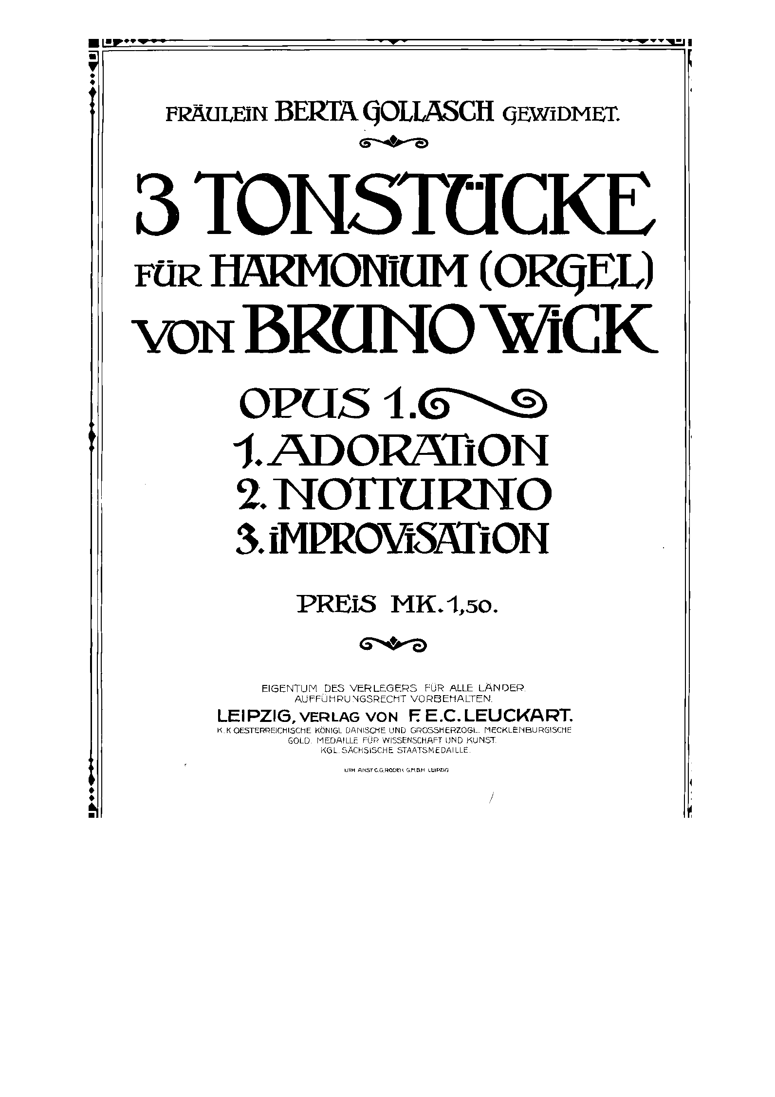 | Alternative. Title | 3 Tonstücke : für Harmonium (Orgel) (Adoration, Notturno, Improvisation) |
