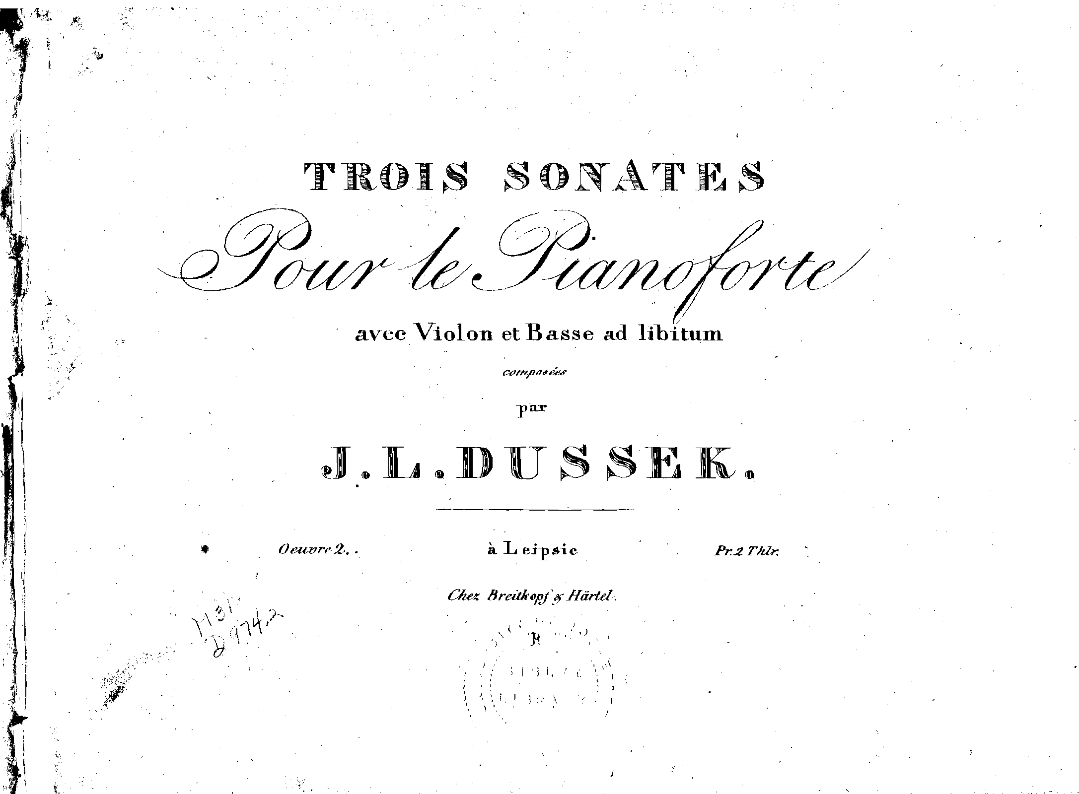 Trois sonates non dificiles pour le pianoforte avec accompagnement de violon et basse ad libitum