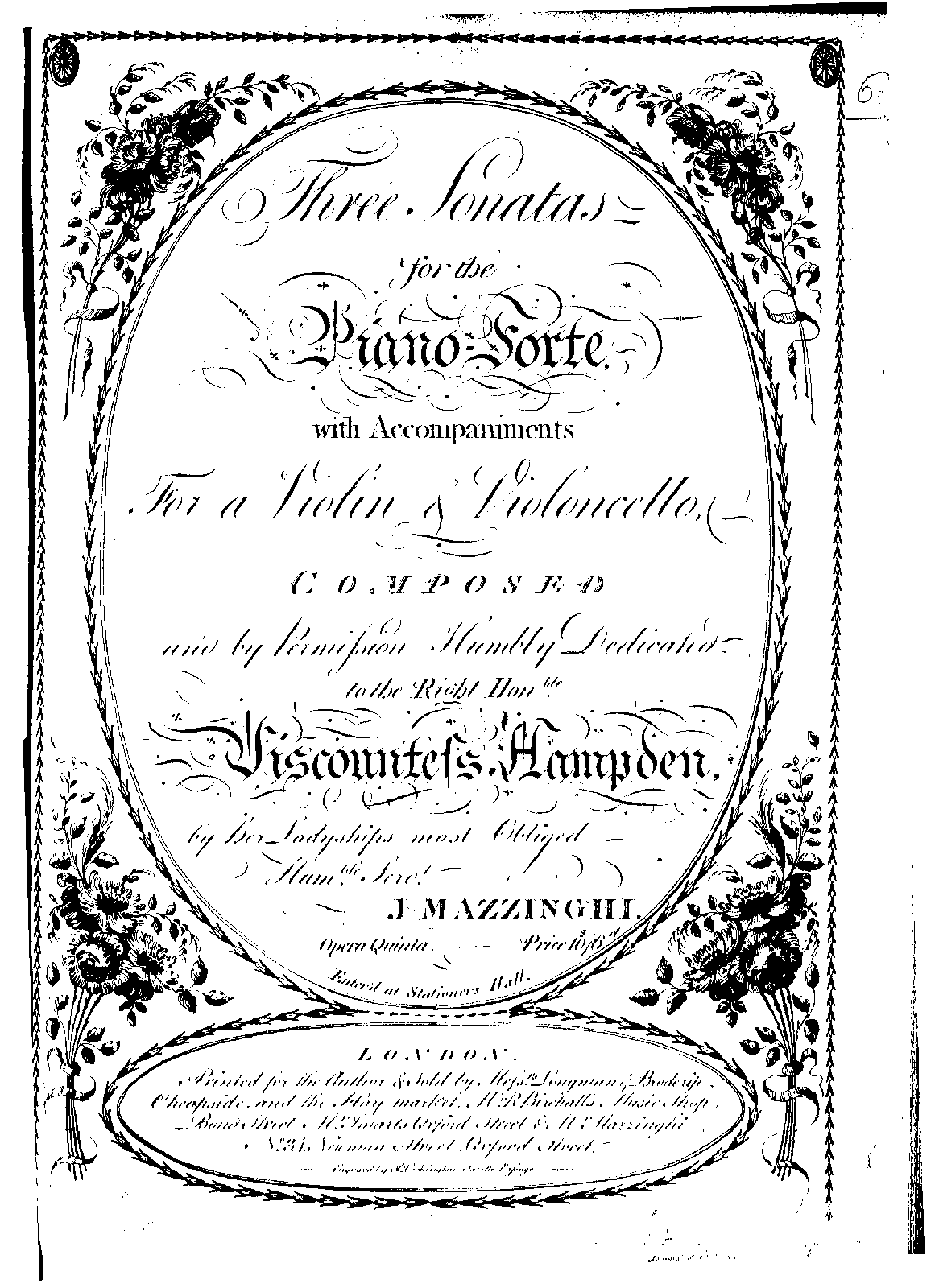 | Alternative. Title | Three Sonatas for the Piano Forte with accompaniments for a violin & violoncello |
