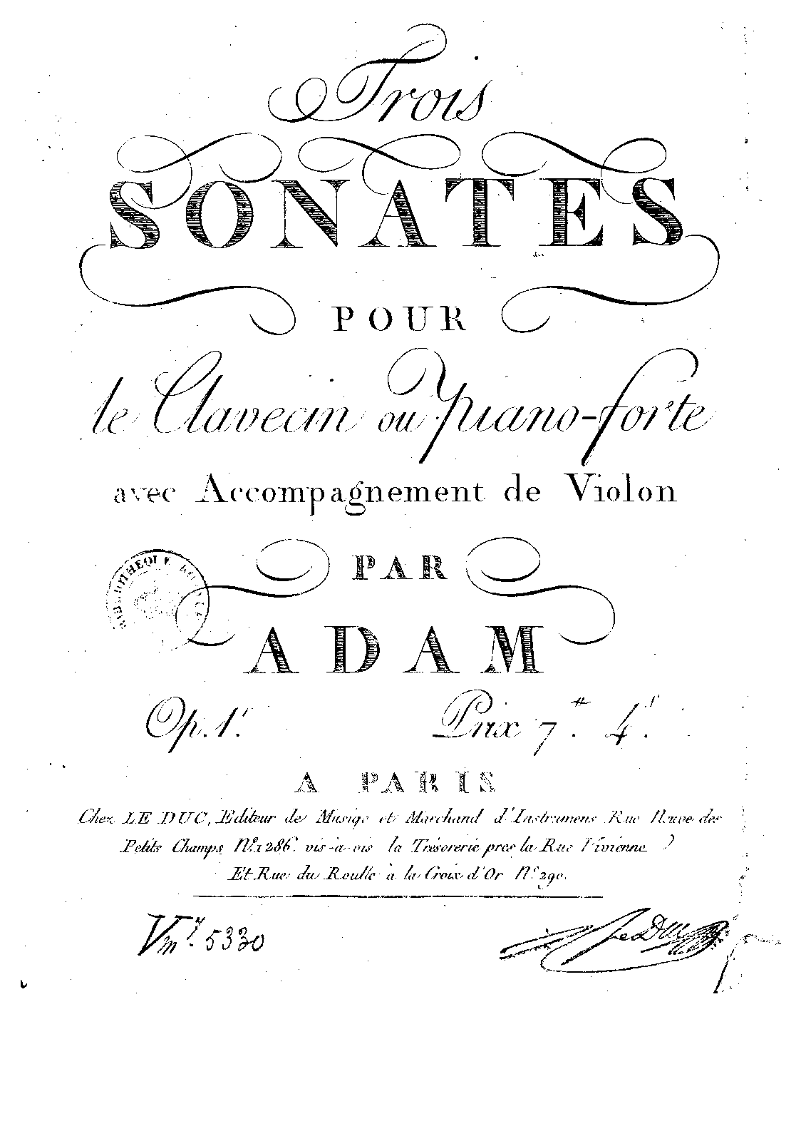 | Alternative. Title | Trois Sonates pour le Clavecin ou Piano-Forte avec accompagnement de violon |