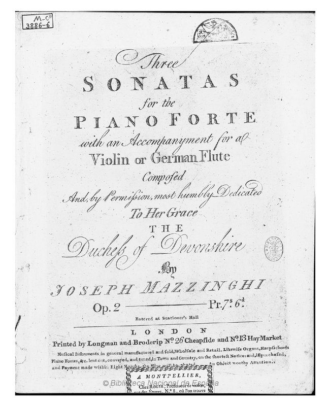 | Alternative. Title | Three Sonatas for the Piano Forte with an Accompanyment for a Violin or German Flute |