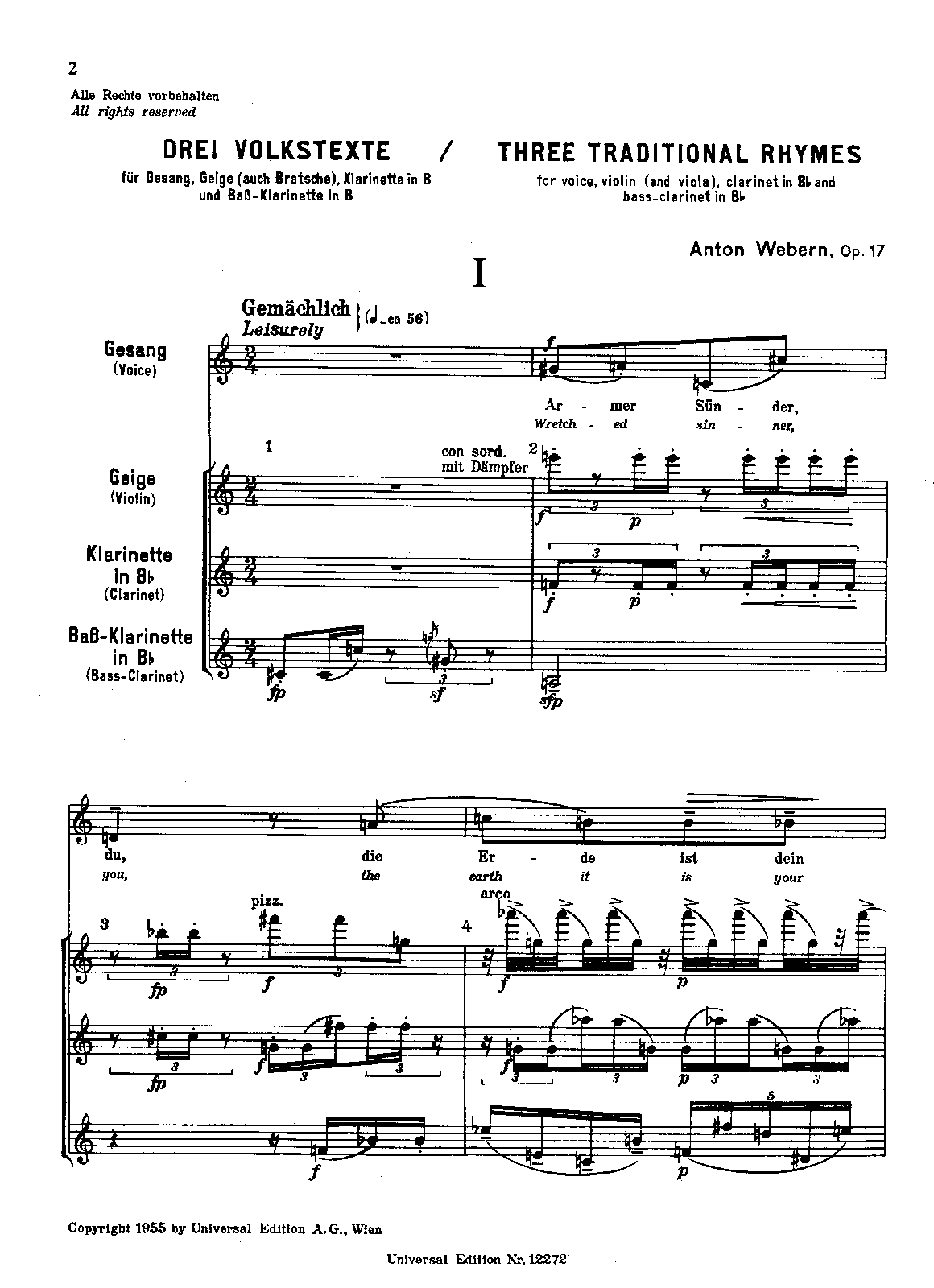 | Instrumentation | voice, clarinet, bass clarinet, violin (also viola) |