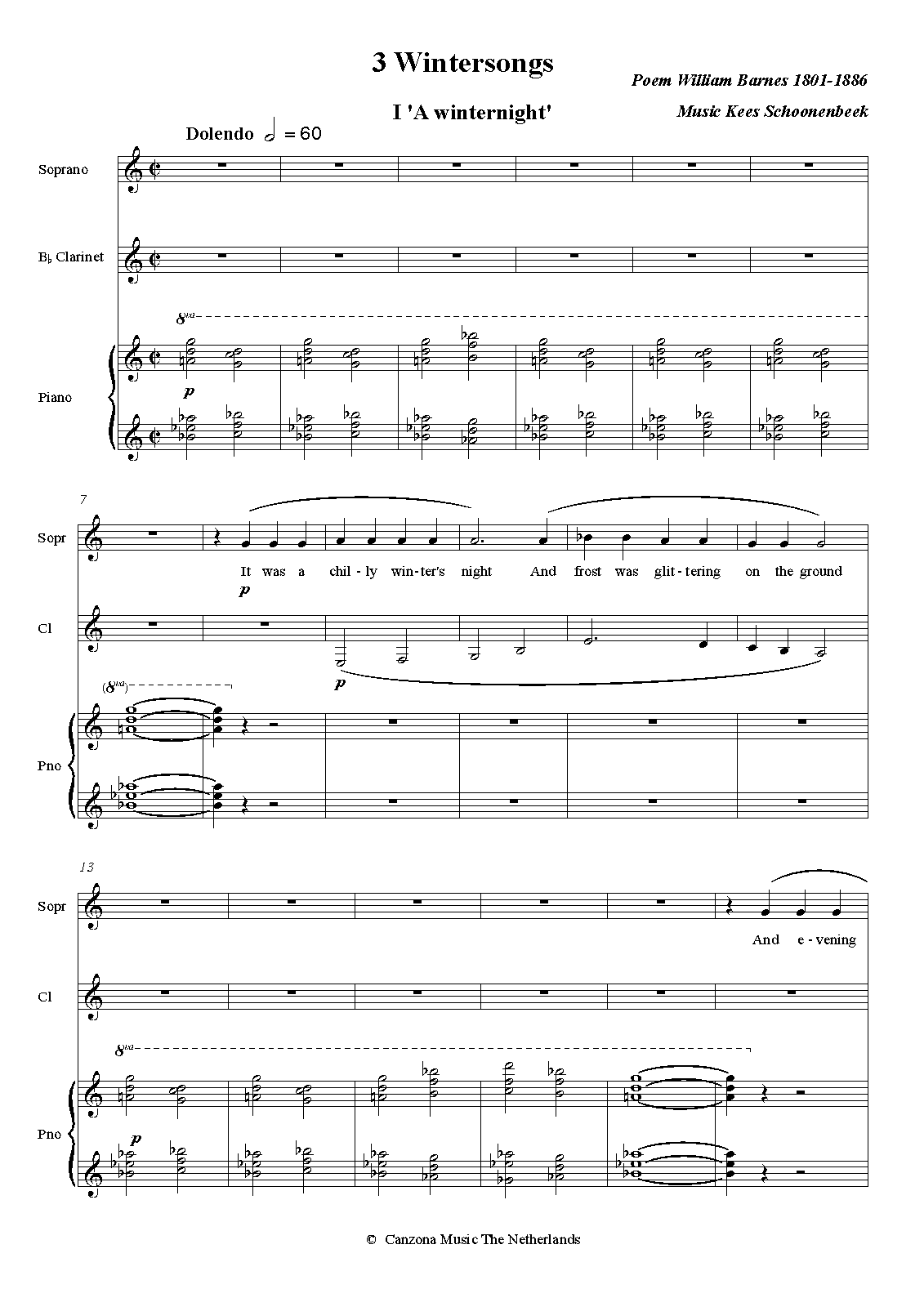 | Genre Categories | Songs; For voice, clarinet, piano; For voices with solo instruments; |