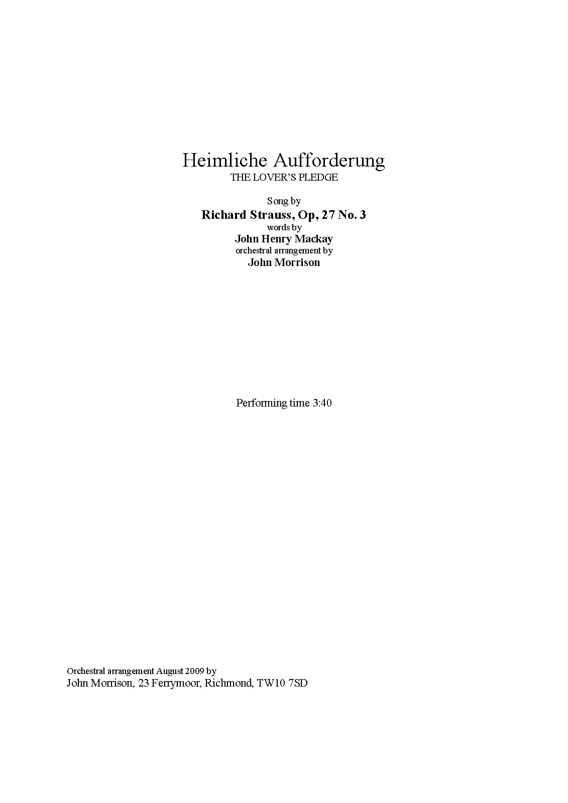| Extra Information | Arranged for voice and orchestra by the composer in 1897. |